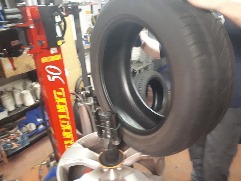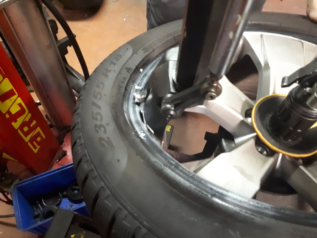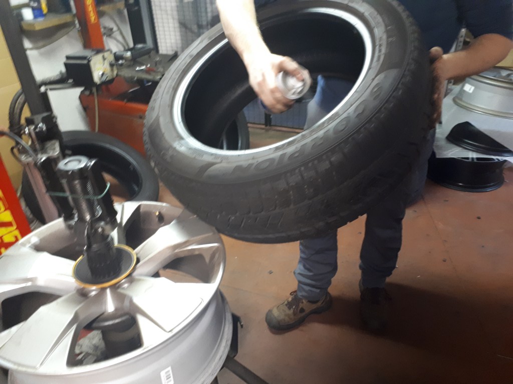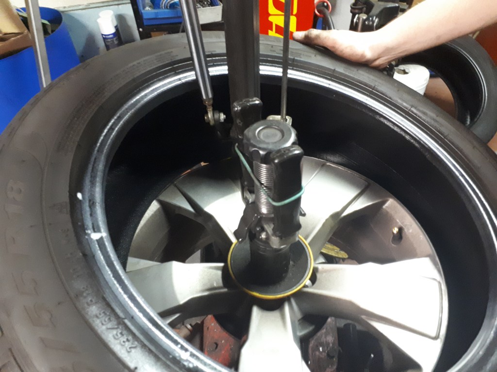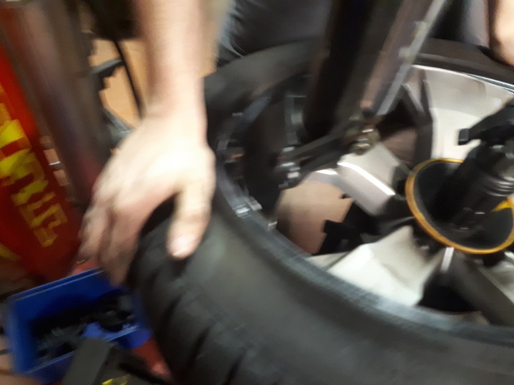- Bandenvet spuiten op de buitenrand van de nieuwe band