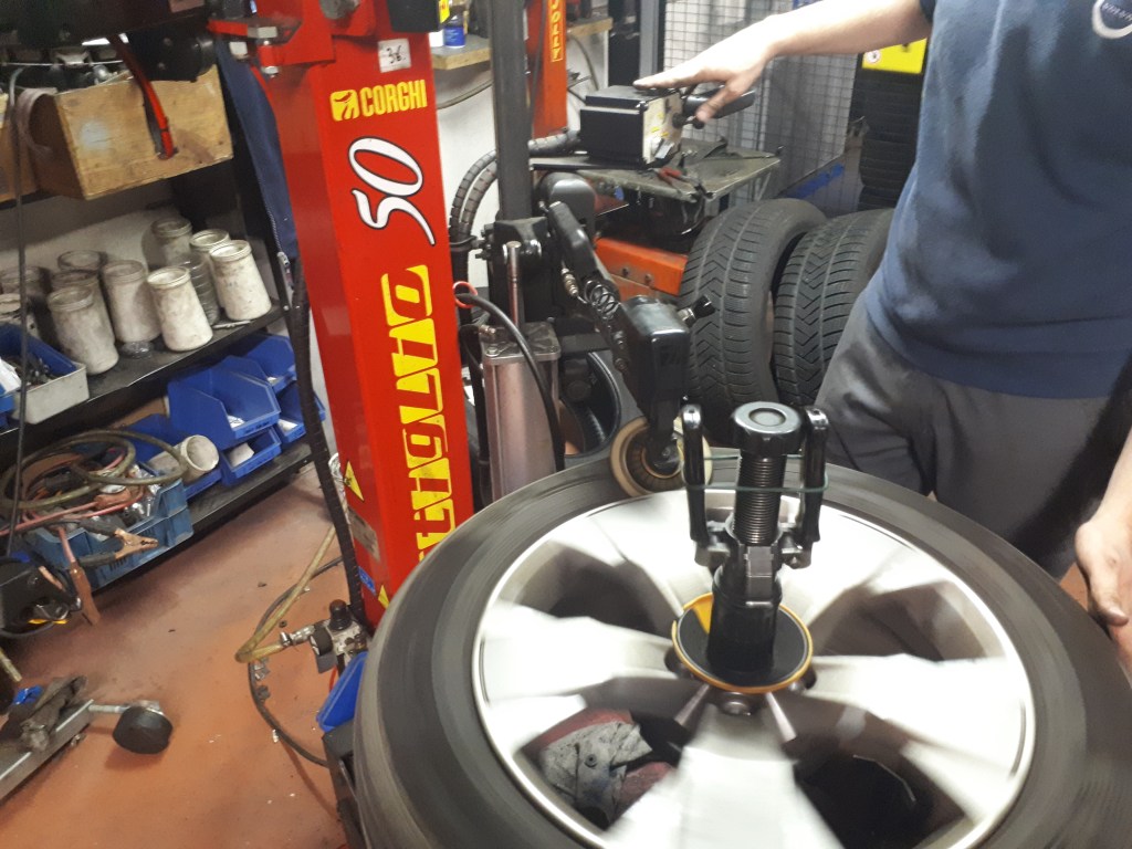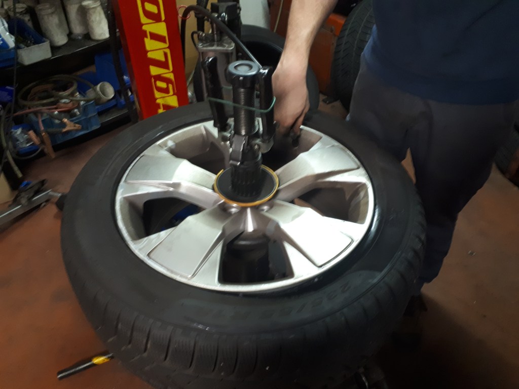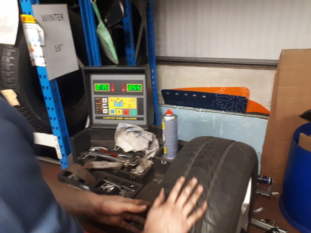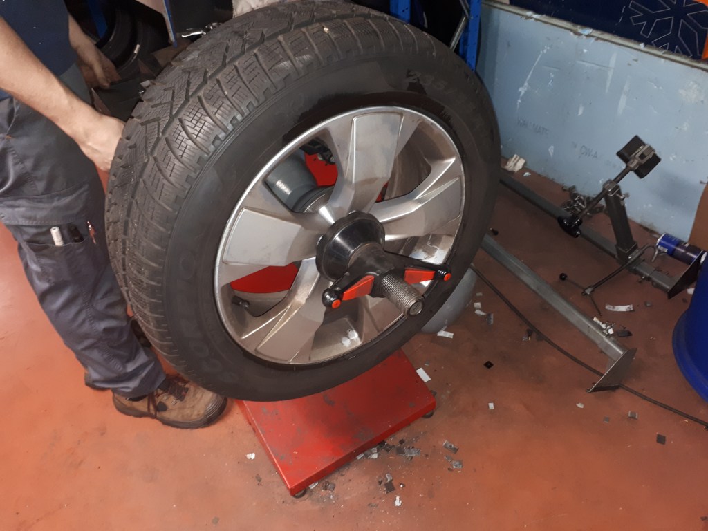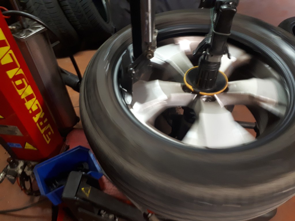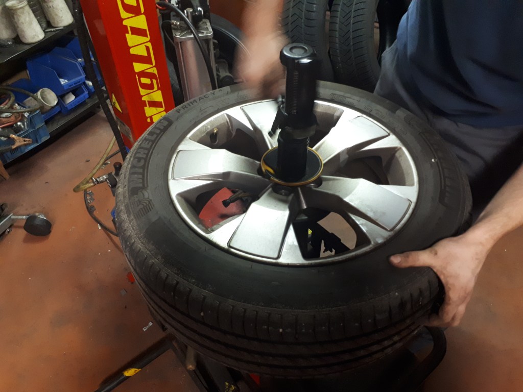 - Bandenvet spuiten op de buitenrand van de nieuwe band