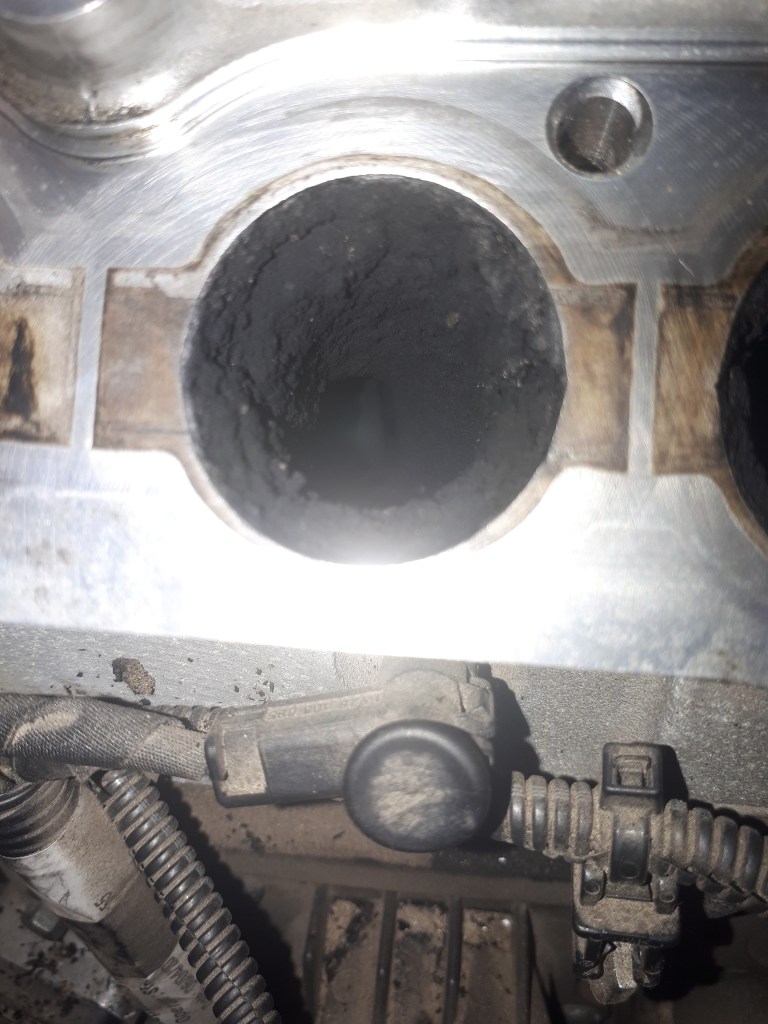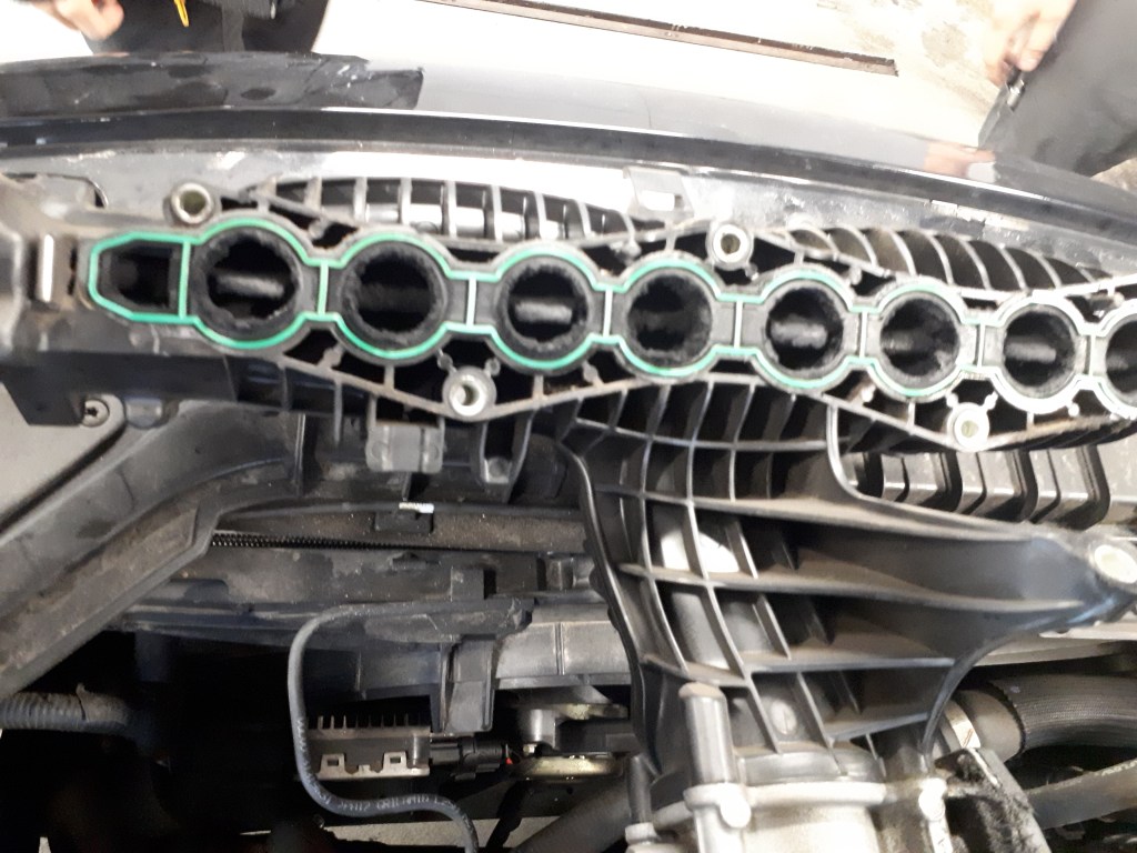 Voor deze te vervangen moet het inlaatstuk worden gedemonteerd. Eens het stuk gedemonteerd was kan je het effect zien van euro 6 dieselmotoren. Het roet die niet meer lang de uitlaat naar buiten gaat moet ergens naar toe en zet zich dus vast op de kleppen en het inlaat stuk (zie foto’s). Dit is wat EGR (exhaust gas recirculation) doet.